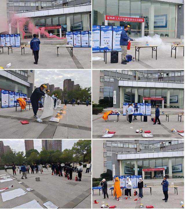 为深入贯彻落实党的二十届四中全会及习近平总书记关于安全生产的重要指示批示精神,保障师生生命安全和校园安全稳定。2025年12月16日,东华理工大学实验室安全应急演练活动在国防科技楼广场举办。活动围绕“人人讲安全、个个会应急——查找身边安全隐患”安全月主题,通过“场景还原+实操训练+疏散演练”的形式,打造了一堂生动而深刻的实验室安全实操课。